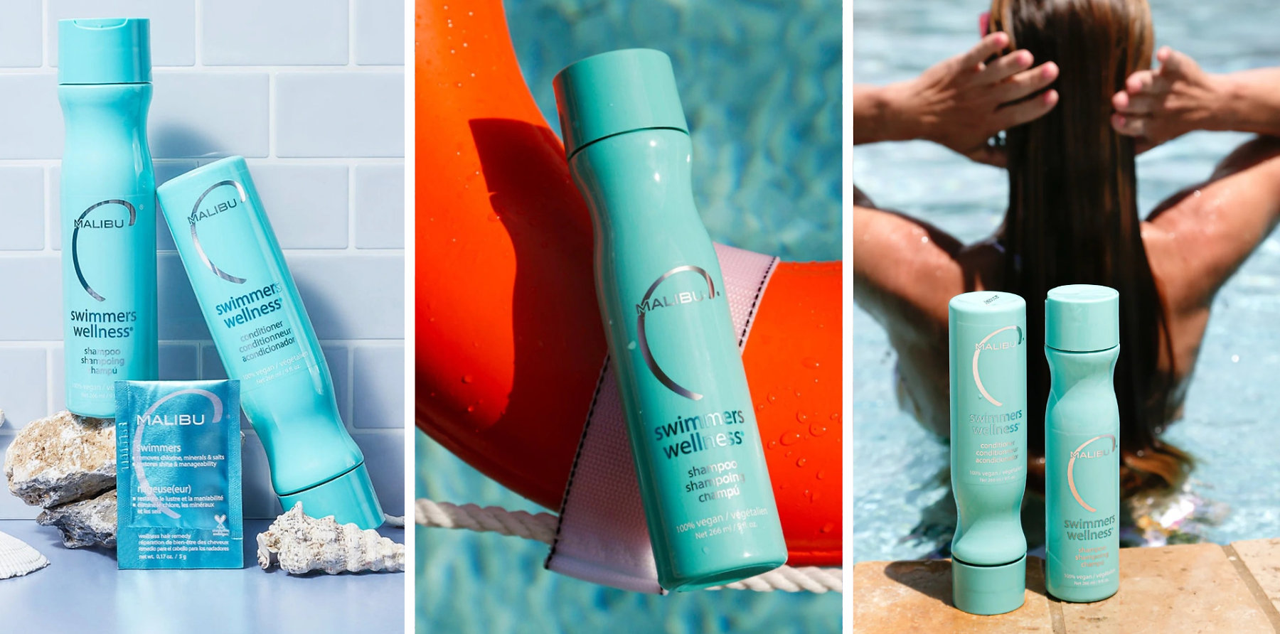 Malibu C Swimmers Wellness je profesionální péče určená pro vlasy, které jsou často vystavené chlóru, slané vodě, minerálům z tvrdé vody a dalším nečistotám z bazénů či moře. Tyto vlivy mohou způsobovat zmatnění vlasů, nežádoucí zabarvení nebo jejich vysušení.