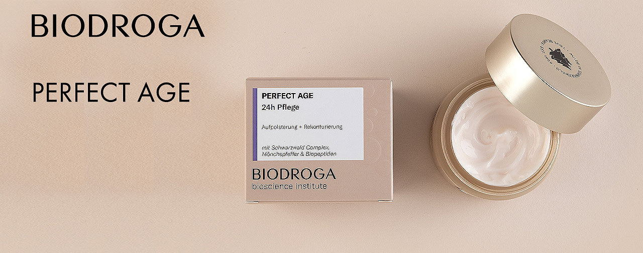 Produkty řady PERFECT AGE BIODROGA Bioscience Institute nabízejí vypnutí a tvarování - pro větší pružnost a stabilitu pleti od nástupu menopauzy. Vybrané složky, jako je Black Forest Complex, extrakt z bobulí mnišského pepře a biopeptidy, vypínají, zpevňují a rekonturovávají pleť, stimulují syntézu kolagenu a zabraňují další ztrátě elasticity.