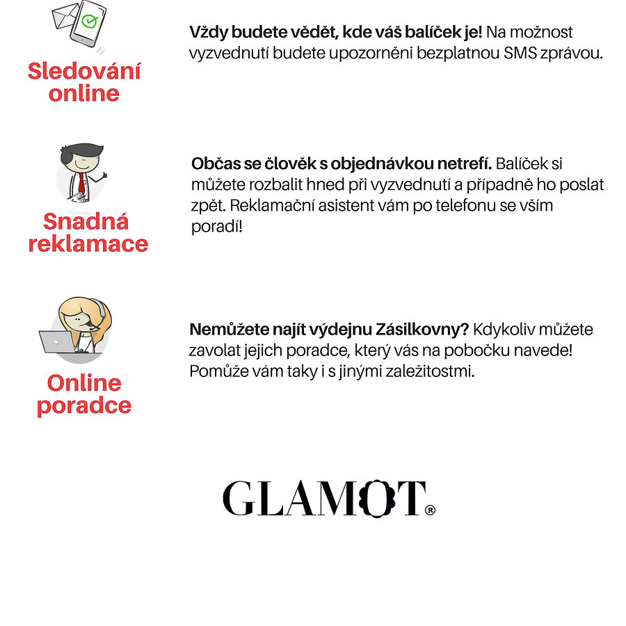 Od teď si můžete nechat doručit své balíčky prostřednictvím služby ZÁSILKOVNA, kterou jsme nově přidali do našeho e-shopu Glamot.cz. Ceny doručení za pouhých 49 Kč.