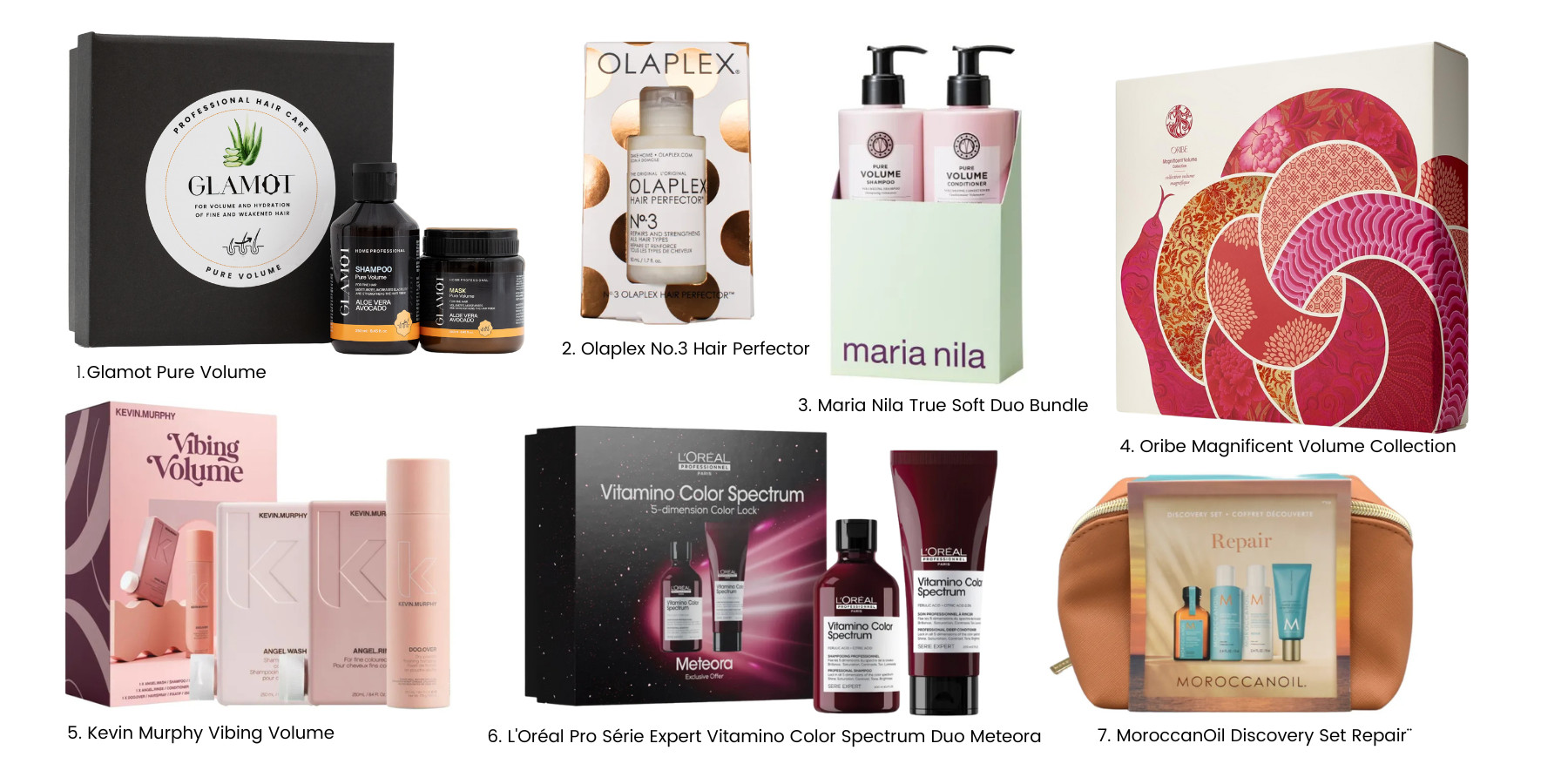 V dárkových sadách na vlasy typicky najdete promyšlené kombinace pro kompletní rutinu: dvojice či tria na každodenní péči (šampon + kondicionér + případně maska), intenzivní kúry pro rychlou regeneraci (masky, bond-repair a bezoplachová péče) i styling pro finální efekt (ochrana proti teplu, objemové pěny, krémy na vlny a lesky).