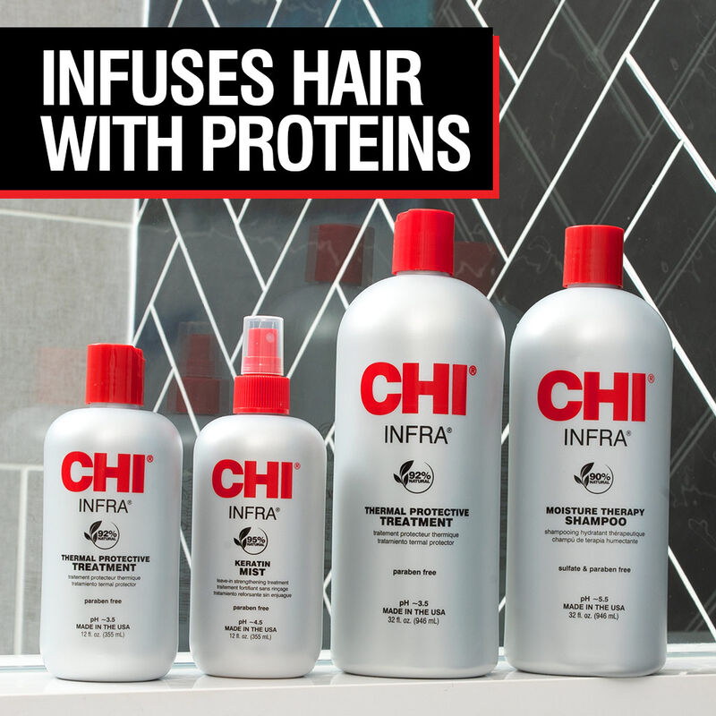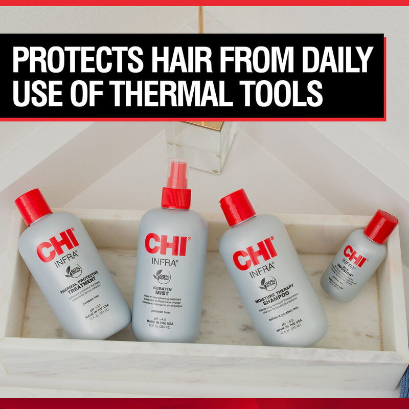 Nanášejte na vlhké umyté vlasy (nejlépe přípravkem CHI Infra Shampoo). Nechte působit 2-5 minut a poté opláchněte.