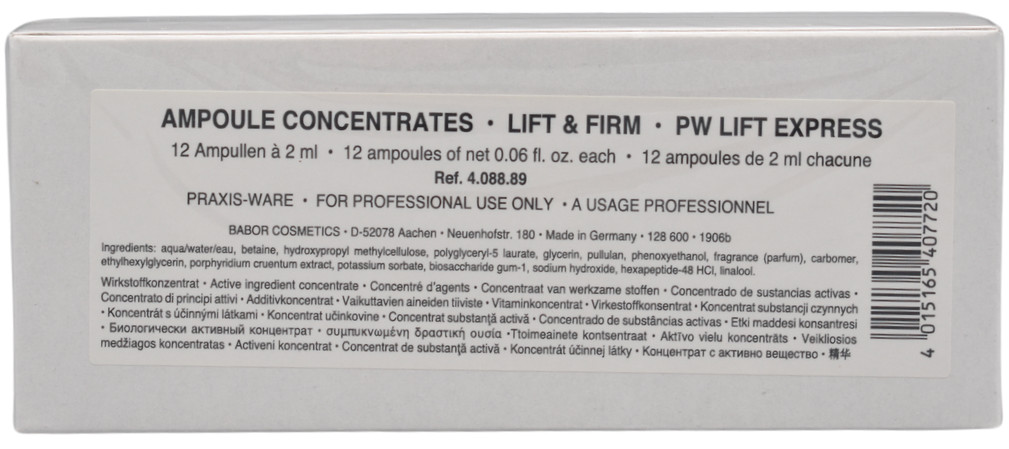 Dodejte své pleti okamžitý mladistvý vzhled a pevnost s Babor Ampoule Concentrates Lift Express. Tento intenzivní liftingový koncentrát je speciálně navržen pro rychlé zpevnění pokožky a redukci vrásek, včetně tzv. "gravitačních vrásek." Výsledky jsou viditelné již méně než hodinu po aplikaci, kdy pleť získá hladší, pevnější a svěžejší vzhled.