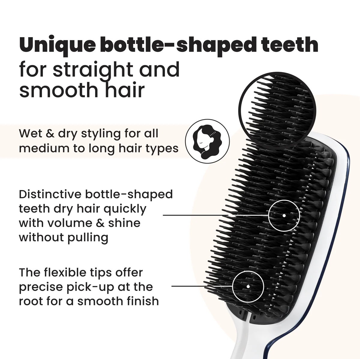 Profesionální kartáč na fénování pro dokonale hladký výsledek. Vhodné pro dlouhé vlasy.