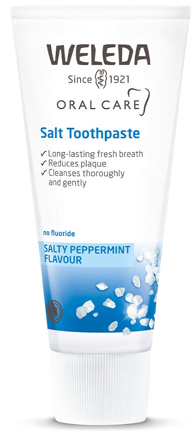 Jedinečná zubní pasta bez fluoridu s mořskou solí a jemnými minerálními čistícími látkami.