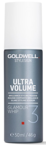 Pečující objemová pěna Goldwell Style Sign Ultra Volume Glamour Whip pro pocit hustějších a zářivějších vlasů. Vhodná pro jemné až normální vlasy. Silně tužící přípravek dodává mdlým, zplihlím a namáhaným vlasům potřebnou péči, objem a zářivost.