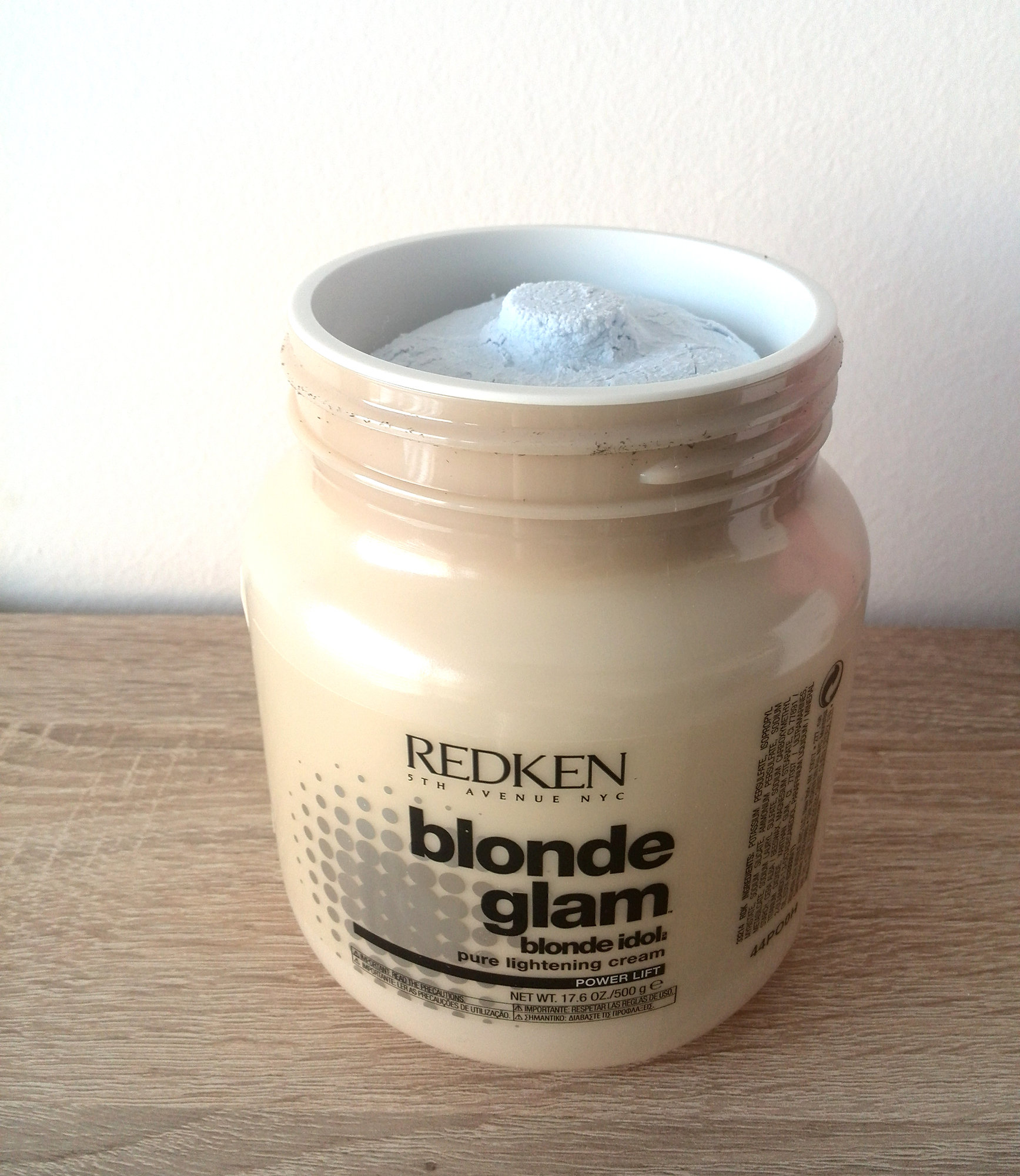 1) Míchání: Produkty smíchejte v nekovové misce na dobře větraném míste. Krém Blonde Glam dejte do misky, poté pomalu přidávejte vyvíječ Redken Blonde Glam Developer v doporučeném množství. Důkladně promíchejte štětcem nebo metličkou tak, aby se vytvořil hladký krém.