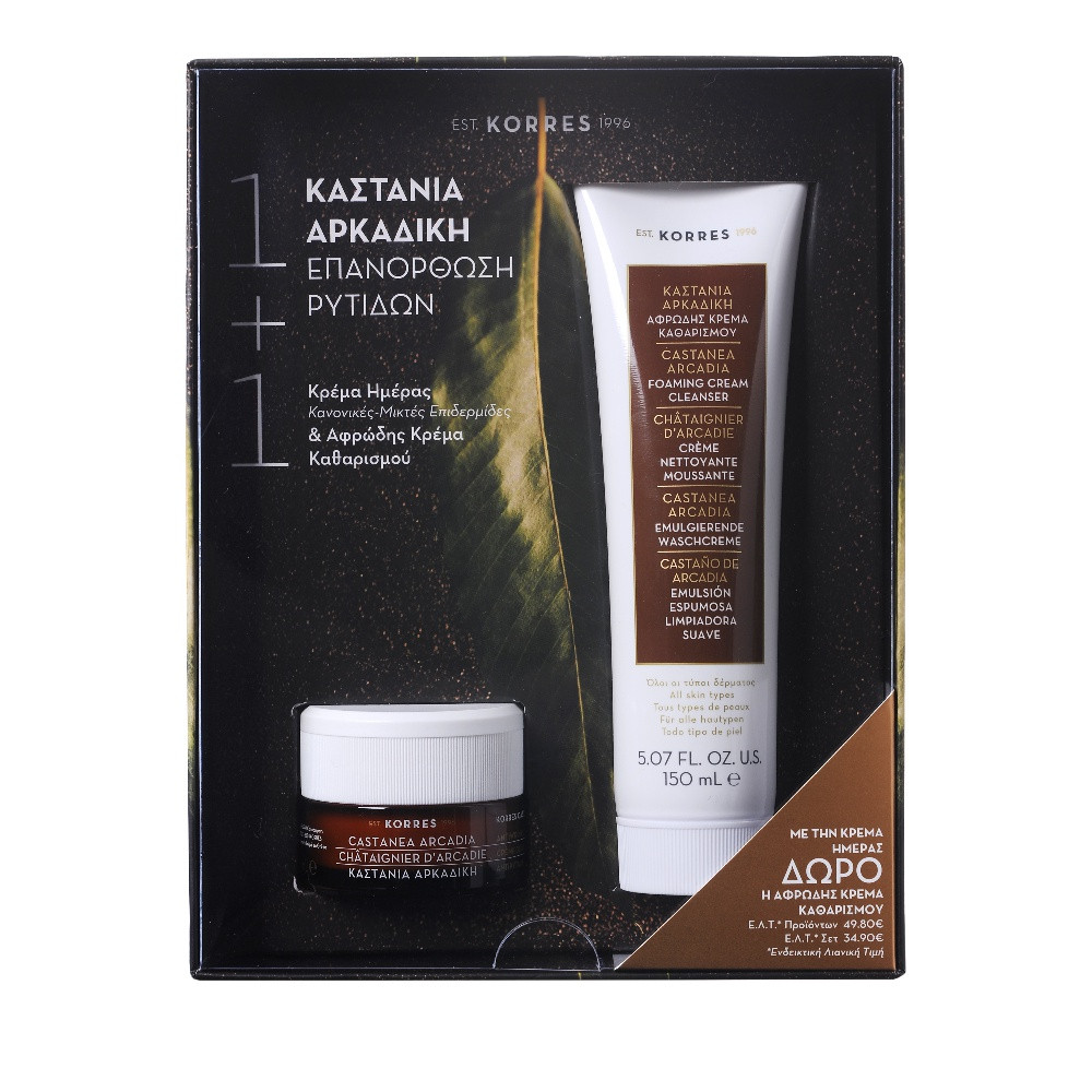 Korres Castanea Arcadia Day Cream & Foaming Cream Cleanser gift Set