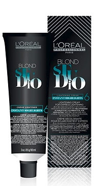 Krém pro zesvětlení vlasů pomocí melírovací žehličky Blond Studio Instant Highlights.