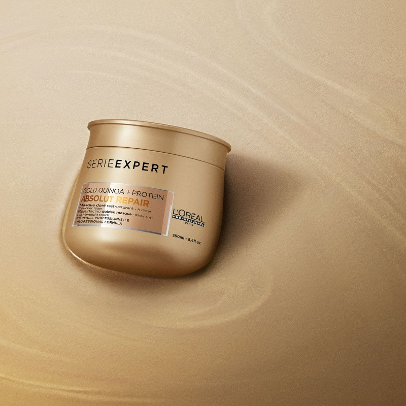 První maska se zlatou texturou pro okamžitou restrukturalizaci vlasů s beztížným pocitem. Ideální pro jemné až normální vlasy.
