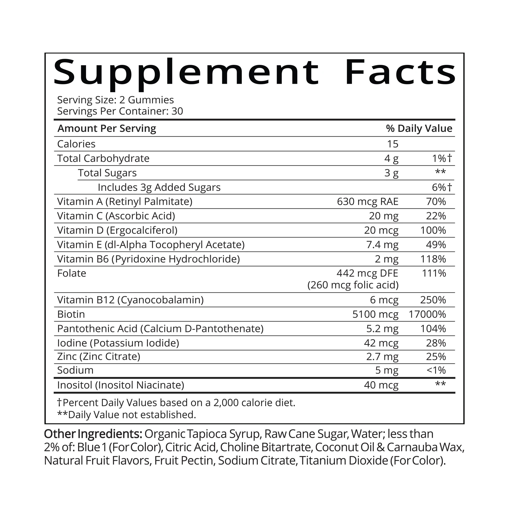 | Biotin | 5 100 mcg | 17 000 % |