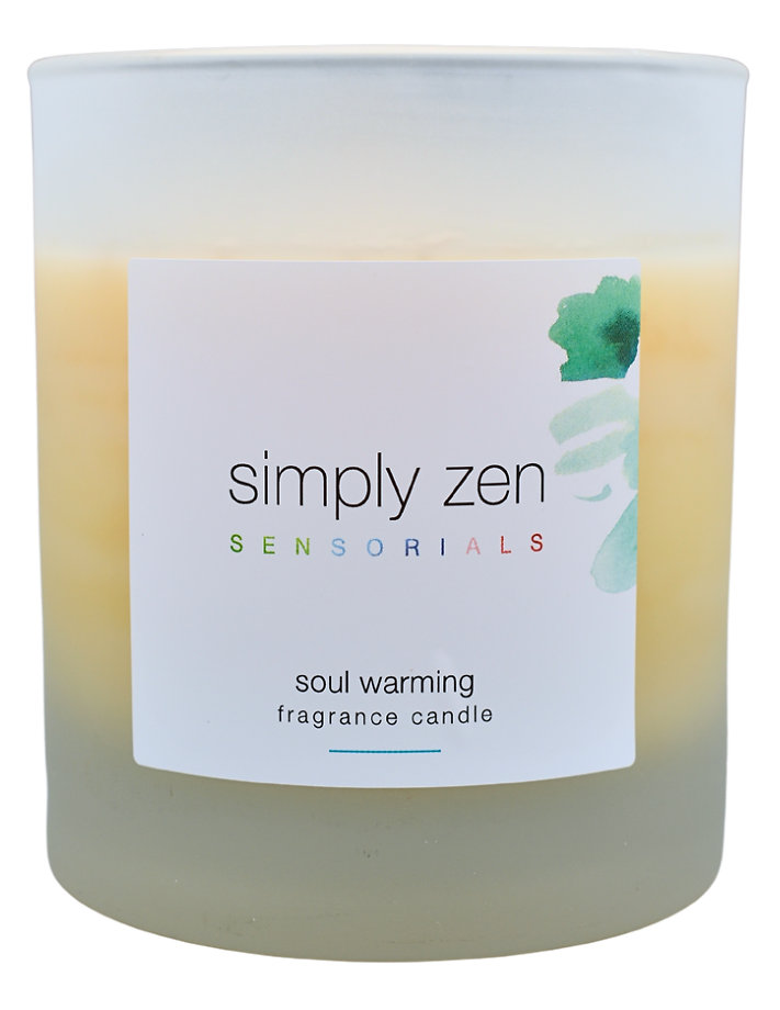 Simply Zen Sensorials Soul Warming Fragrance Candle je luxusní svíčka s osvěžujícími tóny skořicového lístku, pomeranče, limetky a mandarinky, doplněnými esencí skořicové kůry a hřebíčkového listu. Tato svíčka vám pomůže vytvořit relaxační a hřejivou atmosféru v jakémkoli prostoru.