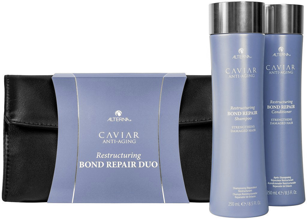 Sada luxusní profesionální vlasové kosmetiky s obsahem kaviáru pro opravu a posílení křehkých a poškozených vlasů.