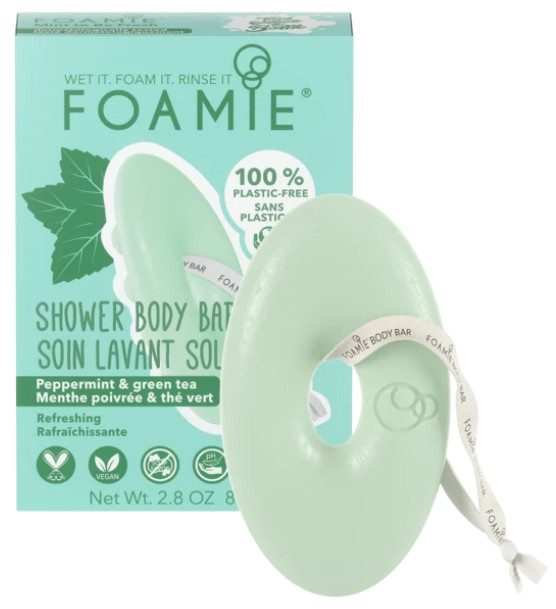 Tuhá sprchová péče s mátovým olejem a zeleným čajem pro všechny typy pokožky.