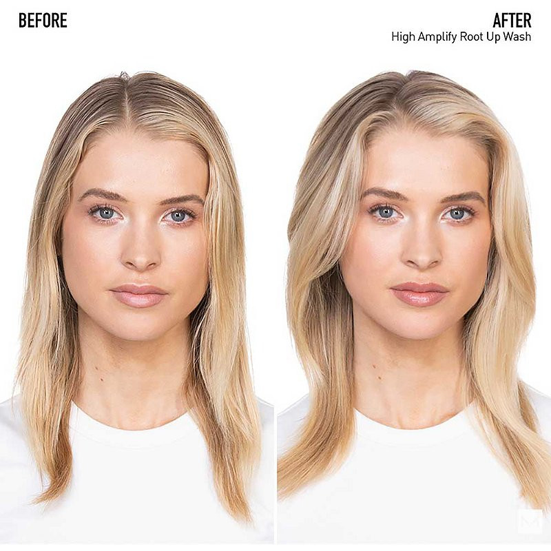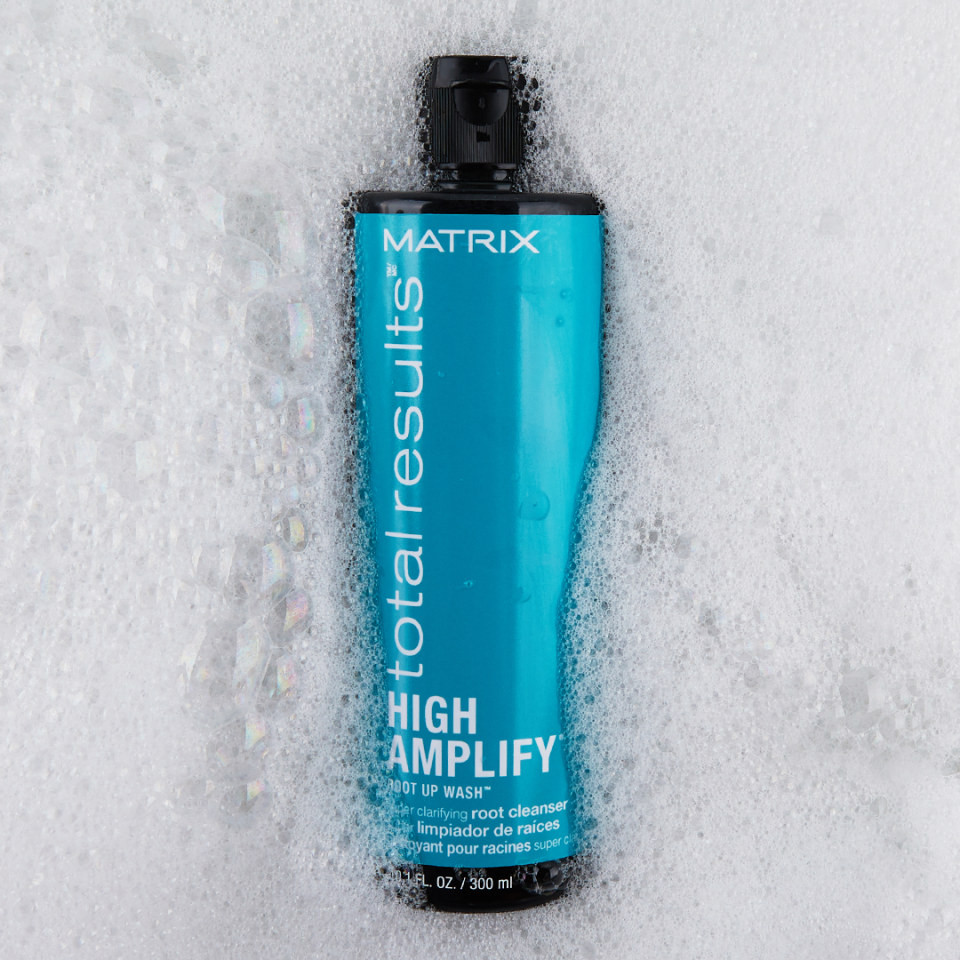 Profi tip! Pokud kořínky potřebují pročistit častěji, použijte ke kořínkům šampon Root Up Wash a na délky šampon High Amplify Shampoo.