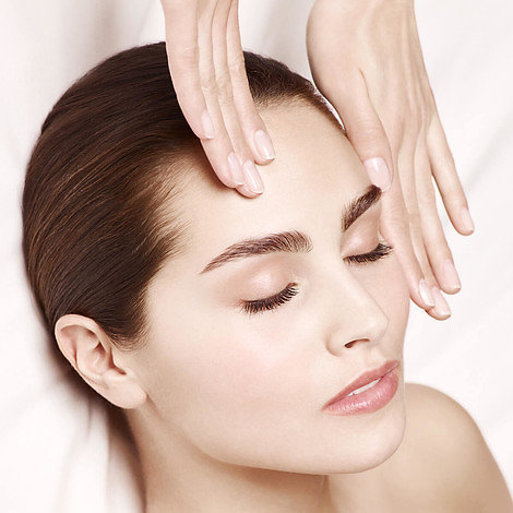 Jemně umístěte masku do středu obličeje a vyhlaďte ji směrem ven, poté pokračujte stejným způsobem v oblasti krku. Nechte působit 15 minut a během této doby pomocí pěstí zatlačte na kontury obličeje směrem nahoru a poté konečky prstů kolem linie vlasů.