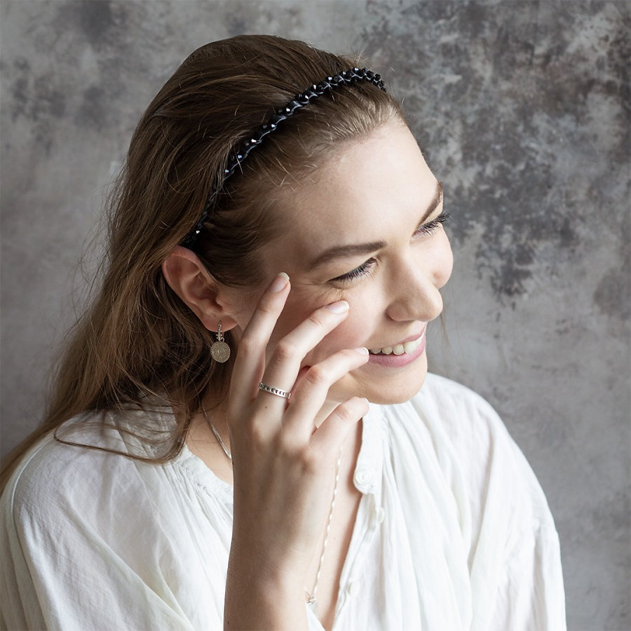 Nastavitelná čelenka v omezené edici s jemným černým sametovým materiálem.