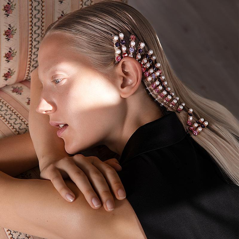 Sponka do vlasů s lesklými kamínky a zářícími perlami dodává účesům zvláštní glamour vzhled s královským puncem.