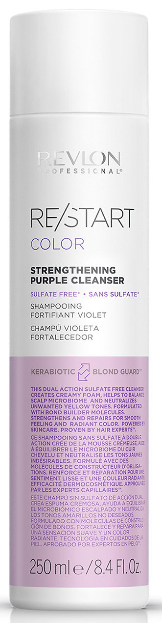 Posilující čistící přípravek s dvojím účinkem pro blond vlasy.