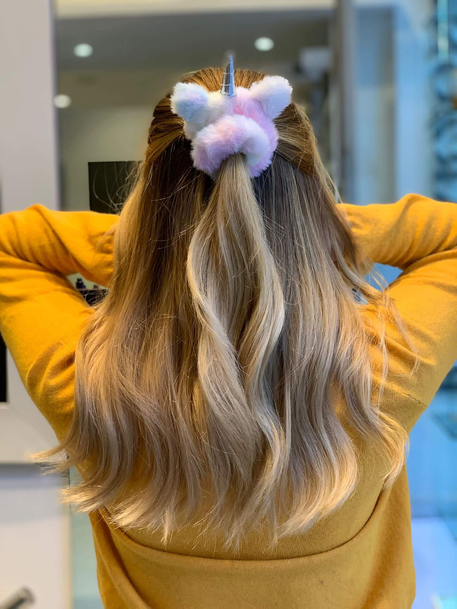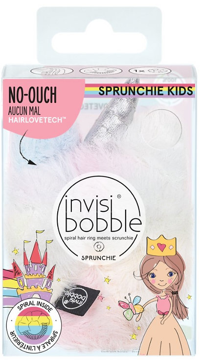 Dětská látková gumička Sprunchie Kids. Modernější verze gumičky 80. let s vylepšeným designem a zvýšeným komfortem při nošení. Nyní v limitované edici Unicorn - rozkošná, huňatá duhová gumička s motivem jednorožce.