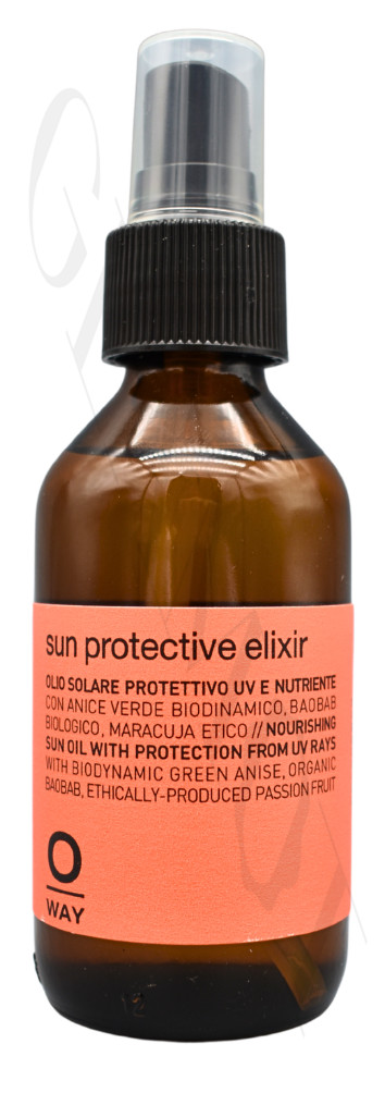 Výživný sluneční olej ve spreji, který vytváří neviditelný UV štít kolem vlasů. Oway SunWay Sun Protective Elixir chrání vlasy před vysušením, blednutím barvy a poškozením způsobeným sluncem, solí, chlórem a pískem, zároveň je zanechává hebké, lesklé a na dotek zdravější – bez zbytečného zatížení a mastného filmu.