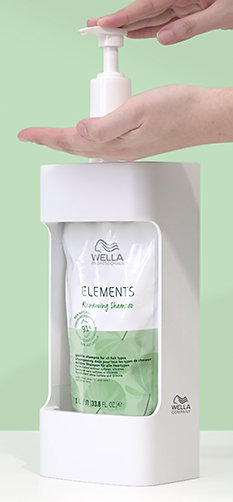 Elegantní dávkovač, který je určen k použití spolu s náplněni šampónu, kondicionéru a masky řady Wella professionals Elements.
