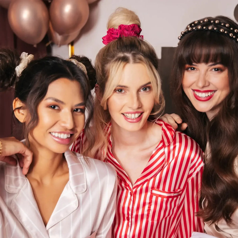 Oslavte dobré časy se svými blízkými a ukažte svou okouzlující stránku. S limitovanou gumičkou do vlasů z příjemné látky můžete ukázat svou ženskost ve dvou variantách: v něžné vínové bordó nebo hvězdném lesku.