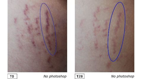 *89% uživatelek zaznamenalo výrazné snížení viditelnosti strií (odborné hodnocení, klinický test v praxi: 37 žen aplikovalo přípravek dvakrát denně po dobu 12 týdnů).