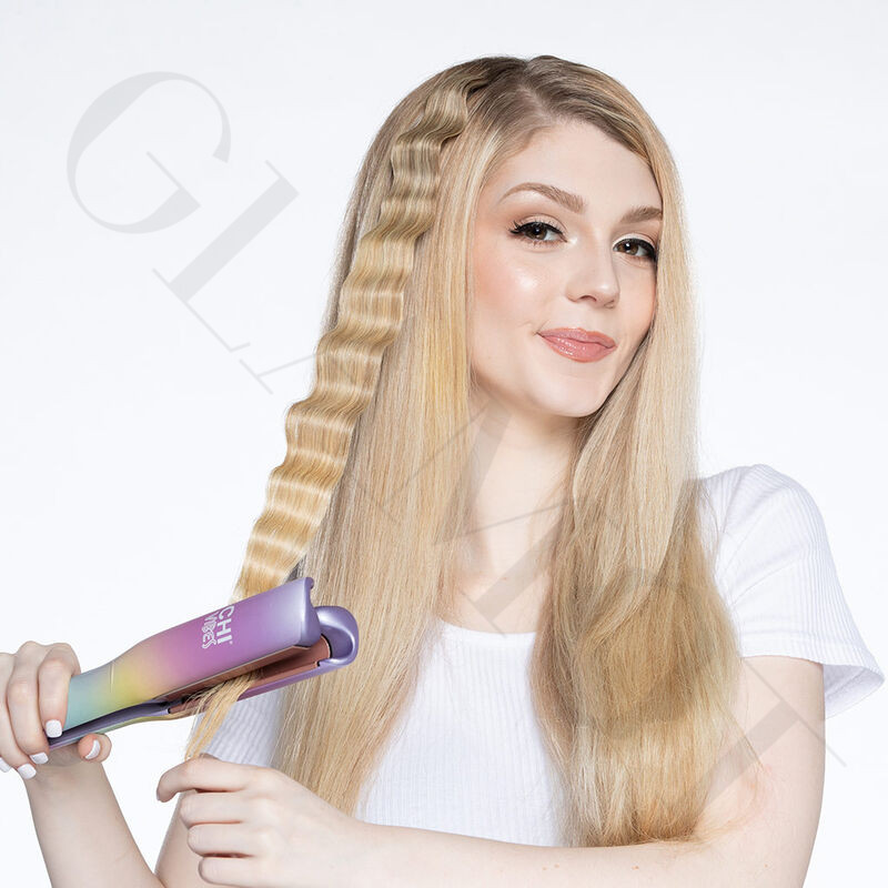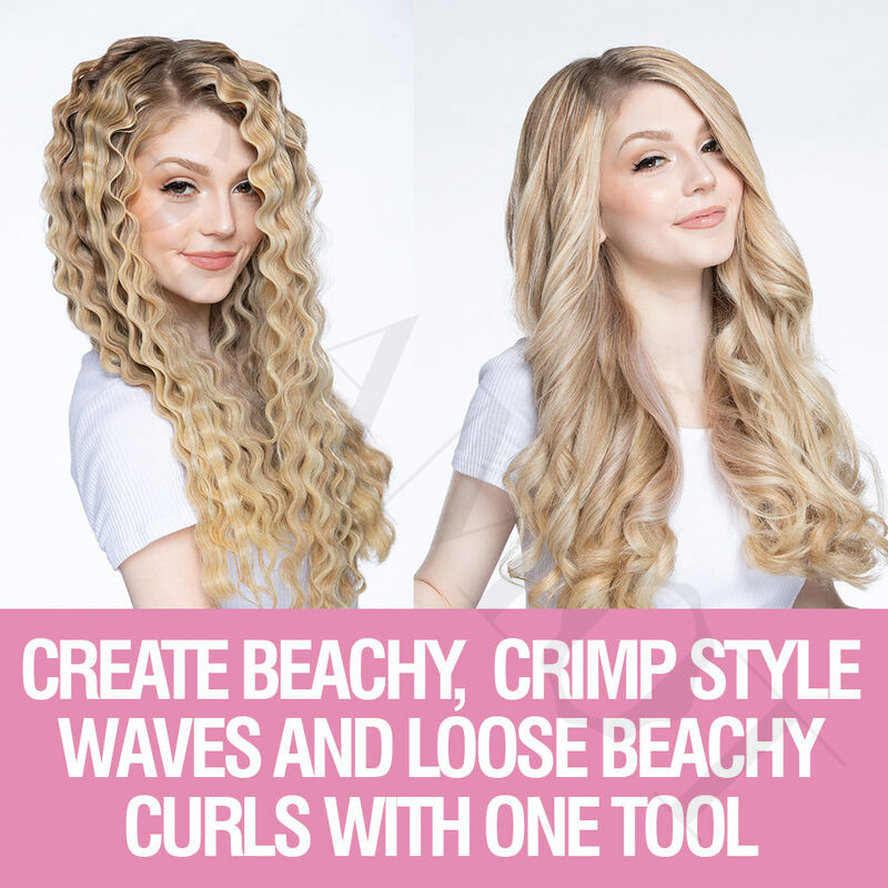 Moderní stylingový nástroj, který v sobě spojuje dvě funkce: umožňuje vytvářet jemné, přirozené vlny i výraznější texturu ve stylu „crimp“. Je vybaven keramickými tvarovacími plochami s růžově-zlatým povrchem, které dodávají vlasům hladkost a lesk, redukují krepatění a rovnoměrně rozvádějí teplo. Technologie iontů a infračerveného záření pomáhá chránit vlasová vlákna a zajišťuje zdravější vzhled po stylingu.