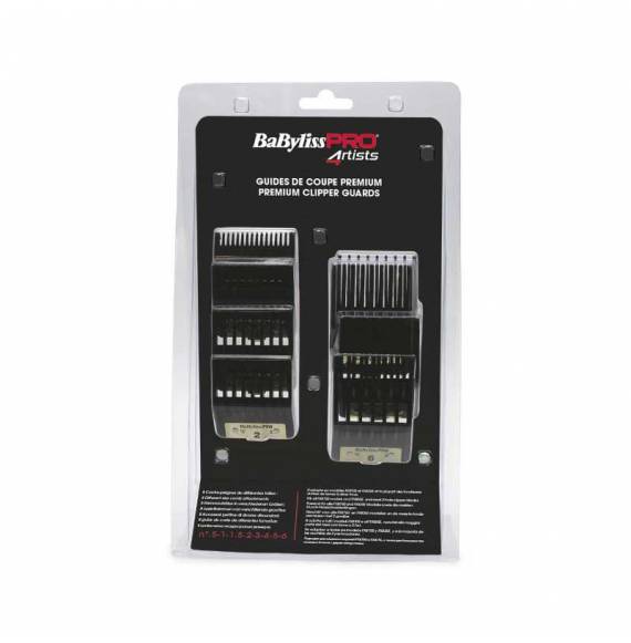 Prémiová sada hřebenových nástavců BaByliss PRO FXPCGE je určena pro profesionální strojky na vlasy řady FX8700 a FX825. Nástavce jsou vyrobeny z nylonu vyztuženého skelnými vlákny, což jim dodává vysokou odolnost a pevnost. Kovová spona v elegantním zlatém provedení zajišťuje snadné nasazení a bezpečné uchycení k čepeli.