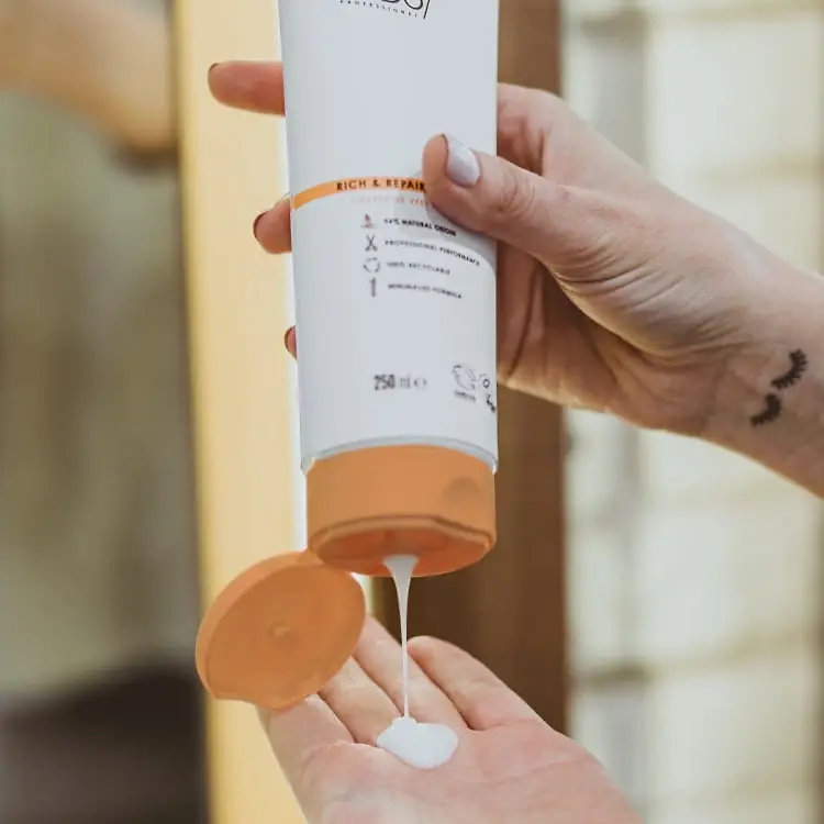 Kondicionér Rich and Repair poskytuje intenzivní péči pro hrubé, suché nebo poškozené vlasy díky jeho bohatému složení bez silikonů. S přirozeně aktivovaným kořenem manioku tento produkt okamžitě usnadňuje rozčesávání, chrání vlasy před lámáním a zanechává je hladké, snadno upravitelné a bez krepatění. Ideální pro ty, kteří hledají efektivní a přírodní řešení pro zdraví svých vlasů.