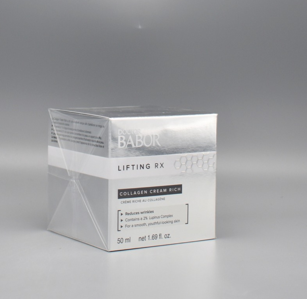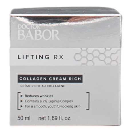 Doctor Babor Lifting RX Collagen Cream Rich je bohatý, účinný krém pro zpevnění pleti, ideální pro zralou a suchou pokožku. S 1% extraktem z hnědých řas zlepšuje pevnost pleti, zatímco 2% Lupinus komplex chrání přirozenou hydratační bariéru kůže. Tento krém efektivně snižuje hloubku vrásek a posiluje ochrannou bariéru pokožky, odhaluje svěžejší, hladší a mladistvější vzhled pleti.
