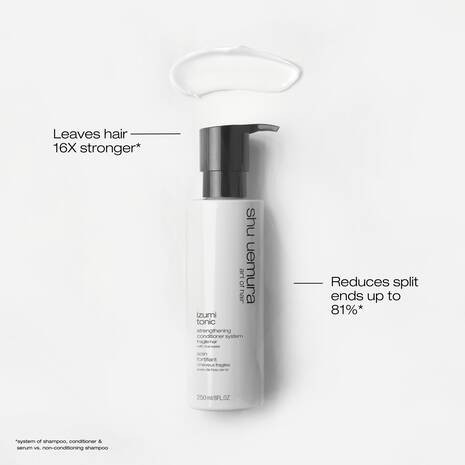Tento posilující kondicionér je každodenní dávkou výživy speciálně navrženou pro slabé a křehké vlasy. Složení obsahující rýžovou vodu, která čerpá z japonských tradic péče o vlasy, vlasy nejen opravuje a posiluje, ale také je činí až 16krát odolnějšími* a snižuje množství roztřepených konečků až o 81%*. Kondicionér Izumi Tonic nejen opravuje poškozené vlasy, ale také jim dodává objem, což vede k hladkým, pevným a krásně lesklým pramenům.