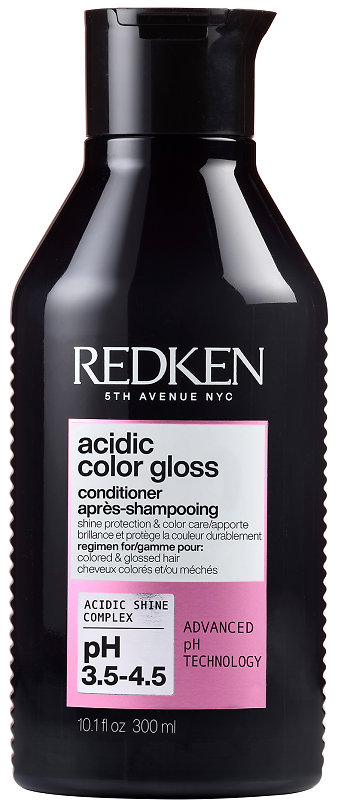 Revoluční inovace v péči o barvu s rozjasňujícím kondicionérem Redken Acidic Color Gloss. Prodlužte zářivost vaší barvy a dopřejte svým vlasům intenzivní péči a lesk jako po návštěve kadeřnického salonu. Kyselé složení vyrovnává vlasové pH a uzavírá vlasovou kutikulu pro dlouhotrvající zářivost a intenzivní lesk vlasů na molekulární úrovni.