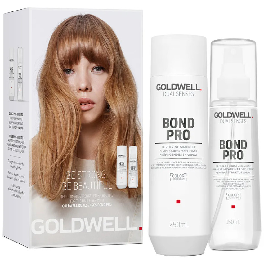 Dopřejte svým slabým a lámavým vlasům intenzivní péči s duem Goldwell Dualsenses Bond Pro. Tato sada obsahuje šampon a sprej, které vlasy posilují, chrání a dodávají jim hebkost a lesk.