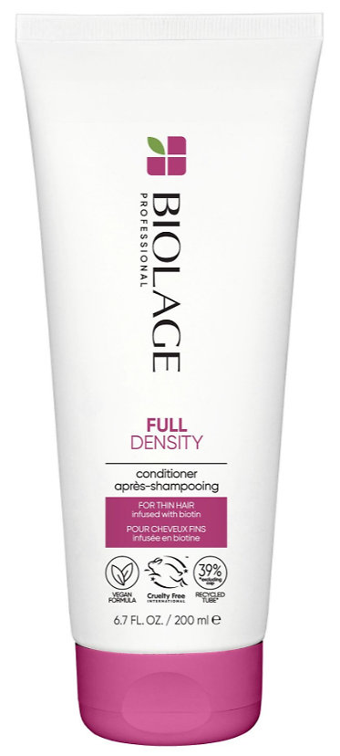 Bojujete s řídnoucími vlasy a toužíte po jejich zahuštění a posílení? Kondicionér Biolage FullDensity Conditioner je tu pro vás! Tento krémový kondicionér s obsahem biotinu a dalších pečujících složek vyživuje vlasové vlákno od kořínků až ke konečkům a pomáhá tak znovu získat husté a zdravé vlasy plné života.
