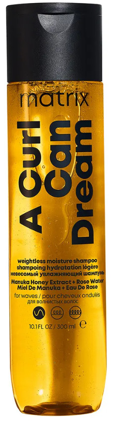 Matrix Total Results A Curl Can Dream Weightless Moisture šampon je určen speciálně pro kudrnaté a vlnité vlasy. Tento šampon nabízí jemné čištění, které pomáhá udržovat přirozený vzorek kudrlinek, aniž by vlasy zatěžoval.
