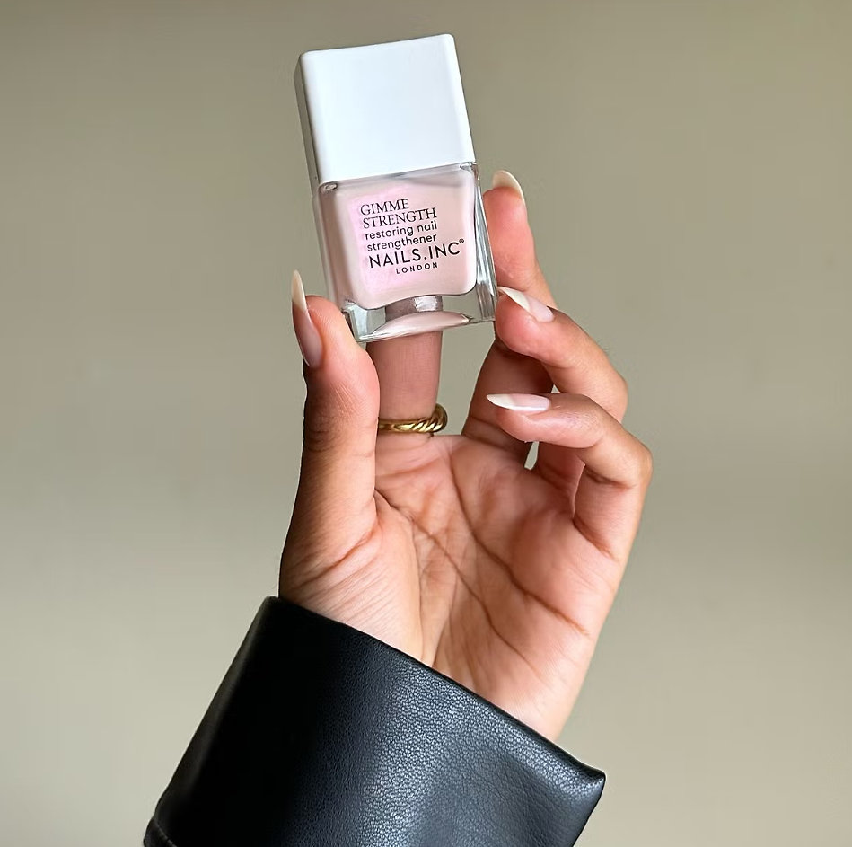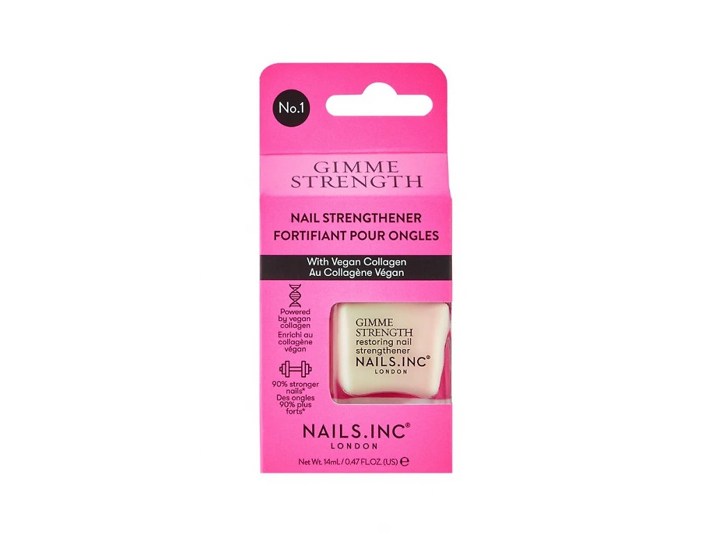 Dopřejte svým nehtům regeneraci a sílu s posilovačem Gimme Strength od Nails Inc. Tento účinný nehtový kondicionér je navržen tak, aby zpevnil, vyživil a obnovil poškozené nebo oslabené nehty – například po gelové či akrylové manikúře. Obsahuje veganský kolagen a směs vyživujících olejů, které podporují pružnost, brání lámání a zanechávají nehty zdravější a odolnější. Jemný perleťový lesk dodá nehtům elegantní vzhled i bez použití barevného laku.