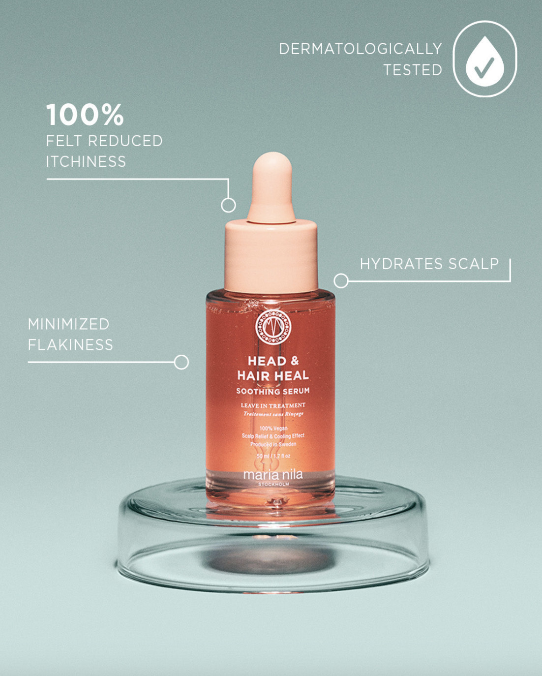 Trápí vás svědění, šupinatost nebo suchost pokožky hlavy? Maria Nila Head & Hair Heal Soothing Serum je zklidňující sérum, které poskytuje okamžitou úlevu a podporuje zdraví vaší pokožky hlavy. Jeho unikátní složení s kyselinou hyaluronovou, aloe vera, mentolem a kofeinem hydratuje, zklidňuje a snižuje svědění.