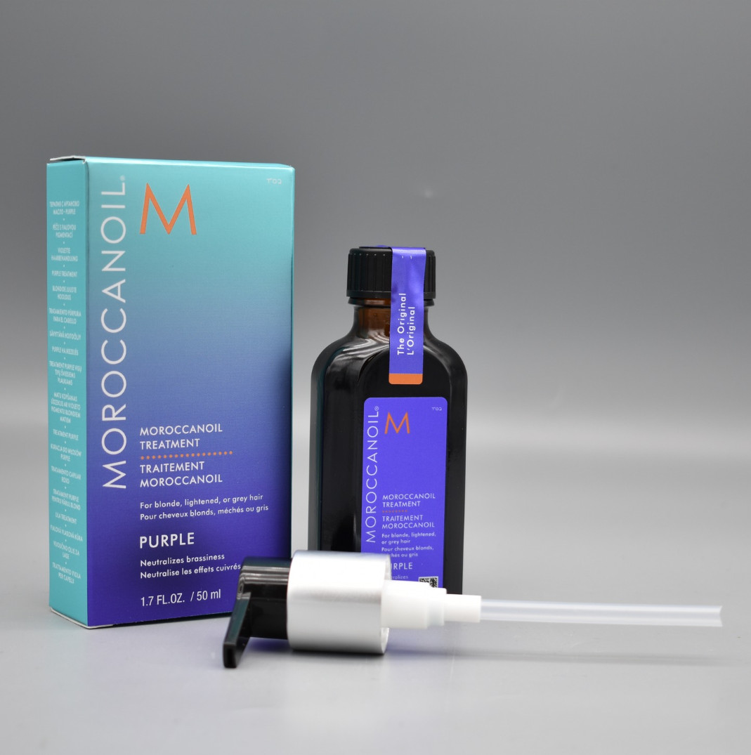 Řekněte sbohem nežádoucím žlutým a oranžovým tónům! Moroccanoil Treatment Purple je inovativní tónovací olej, který byl speciálně vyvinut pro blond, zesvětlené a stříbrné vlasy. Díky obohacení o fialové pigmenty postupně neutralizuje mosazné podtóny a zároveň poskytuje intenzivní péči. Tento luxusní, ale lehký olej s arganovým olejem okamžitě proniká do vlasů, zlepšuje jejich ovladatelnost, dodává lesk a poskytuje dlouhodobou hydrataci bez zanechání mastného zbytku.