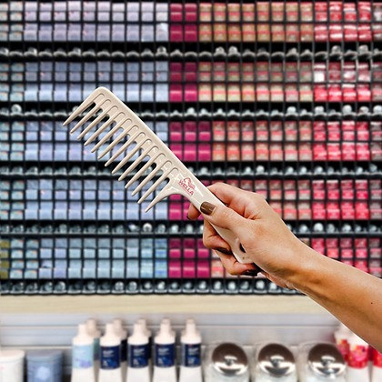 Odolný hřeben se širokými zuby, který hladce klouže mokrými vlasy a pomáhá rovnoměrně rozprostřít barvu či toner po celé délce
