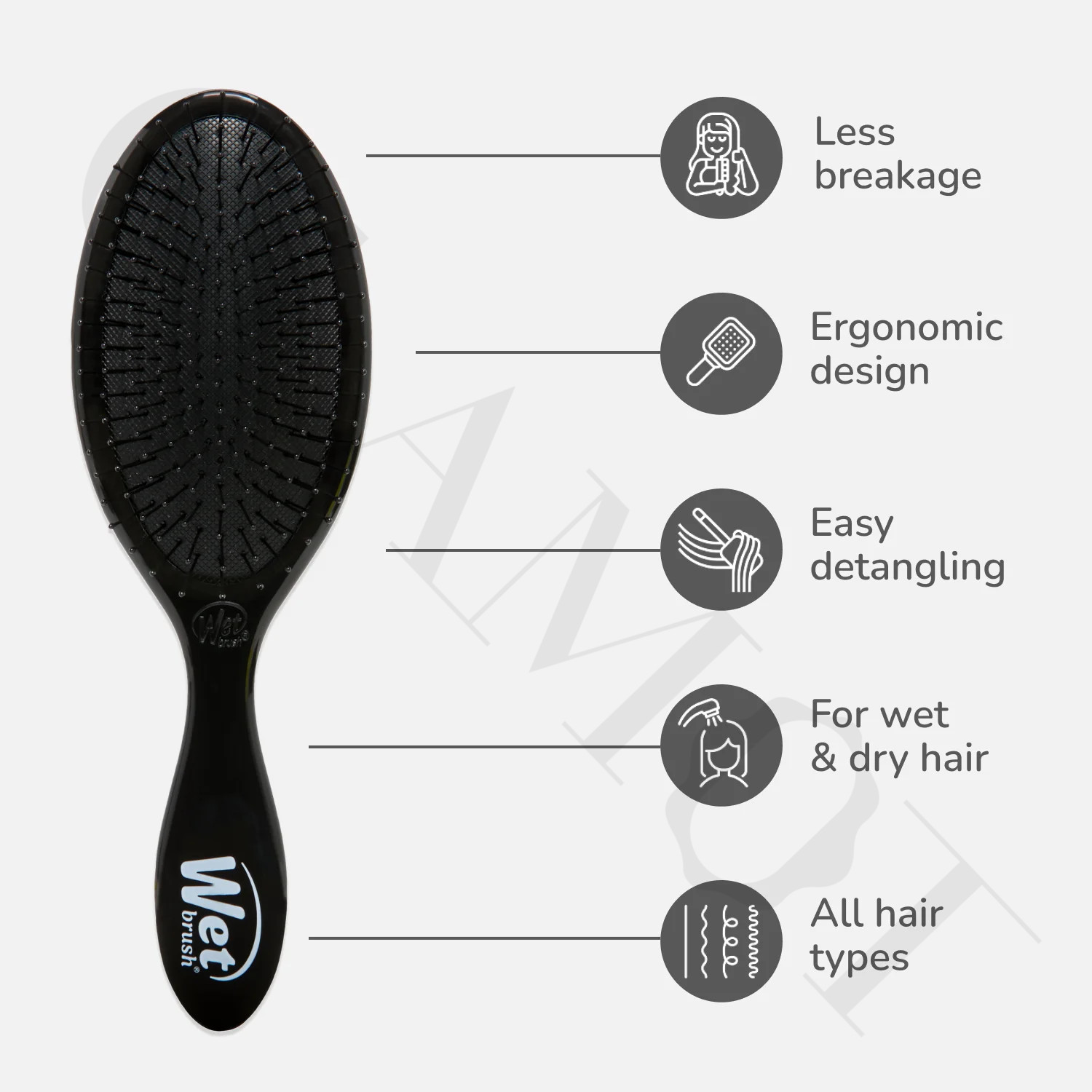 Wet Brush Original Detangler je nejoblíbenější kartáč pro každodenní péči o vlasy. Díky jedinečné technologii IntelliFlex® se štětiny jemně přizpůsobují vlasům, hladce jimi proklouznou a účinně rozčesávají zacuchané prameny bez zbytečného tahání či lámání. Je vhodný pro všechny typy vlasů – suché i mokré, rovné, vlnité i kudrnaté.