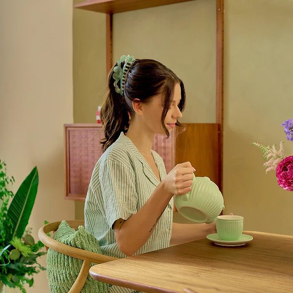 Zpomalte a užijte si svůj okamžik s Invisibobble Clipstar XL Matcha Reset z kolekce Oasis. Tento** extra velký skřipec** v uklidňujících zelených tónech byl navržen tak, aby spolehlivě udržel i husté či dlouhé vlasy, a přitom dodal vašemu vzhledu jemný dotek přírodní elegance. Ať už relaxujete doma, cvičíte jógu nebo jste v pohybu, tento klip vám pomůže udržet vlasy pod kontrolou – pohodlně a bez námahy.