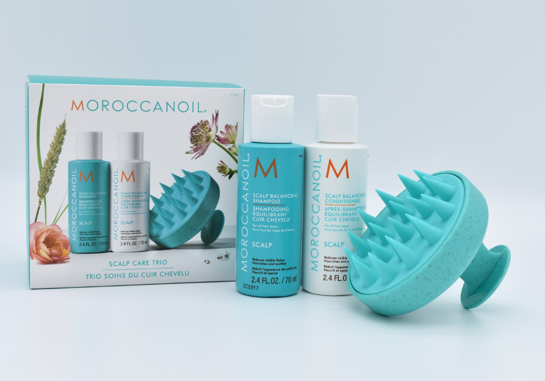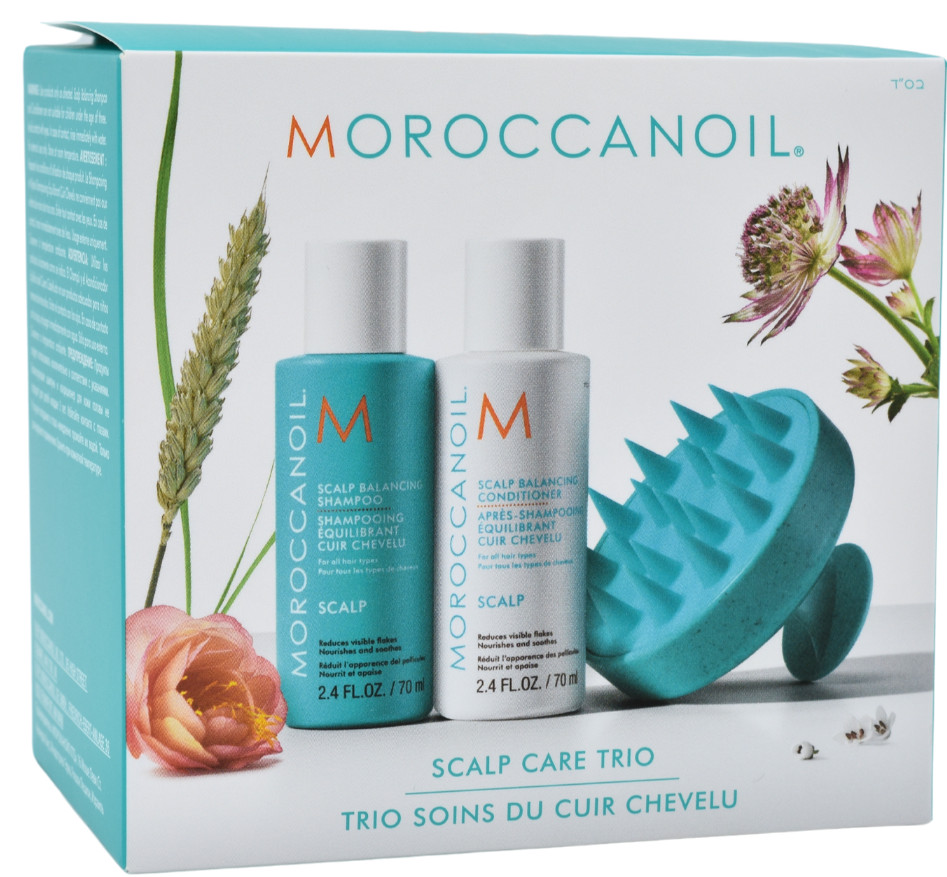 Zdravá pokožka hlavy je základem krásných, silných vlasů. Cestovní sada Moroccanoil Scalp Care Discovery Set vám pomůže obnovit rovnováhu pokožky, zklidnit podráždění a poskytnout vašim vlasům dokonalou péči. Kombinace šetrného šamponu, vyživujícího kondicionéru a masážního kartáče přináší účinnou, ale jemnou péči, která promění každodenní rutinu v relaxační wellness zážitek – a to i na cestách.