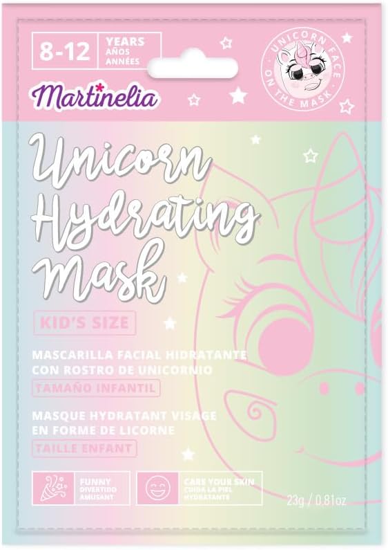 Vstupte do kouzelného světa péče o pleť s maskou Martinelia Starshine Unicorn! Tato rozkošná hydratační textilní maska ve tvaru jednorožce nejenže potěší svým vzhledem, ale především dodá dětské pleti potřebnou hydrataci a výživu. Ideální pro malé slečny, které se chtějí o svou pleť starat jako dospělé – hravě, jemně a bezpečně. Vhodná pro děti od 8 let!