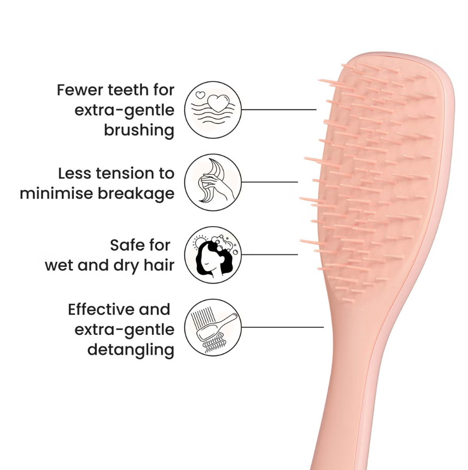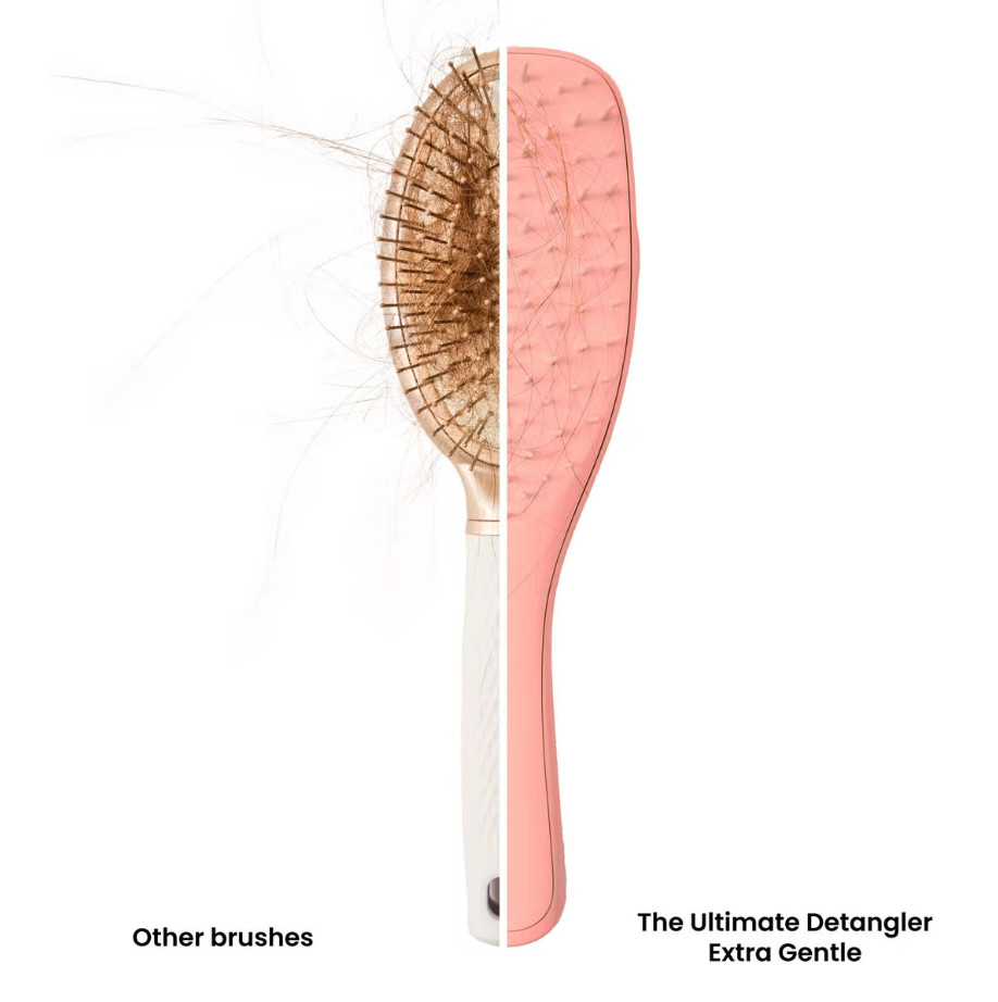 Profesionální kartáč Tangle Teezer The Ultimate Detangler Extra Gentle je navržený speciálně pro jemné, citlivé a křehké vlasy. Díky jedinečnému vzoru zubů je mimořádně šetrný, minimalizuje lámání i vypadávání vlasů a usnadňuje jejich rozčesávání. Na okrajích je méně zubů pro menší napětí, zatímco uprostřed jsou hustší pro efektivní a jemné rozčesání.