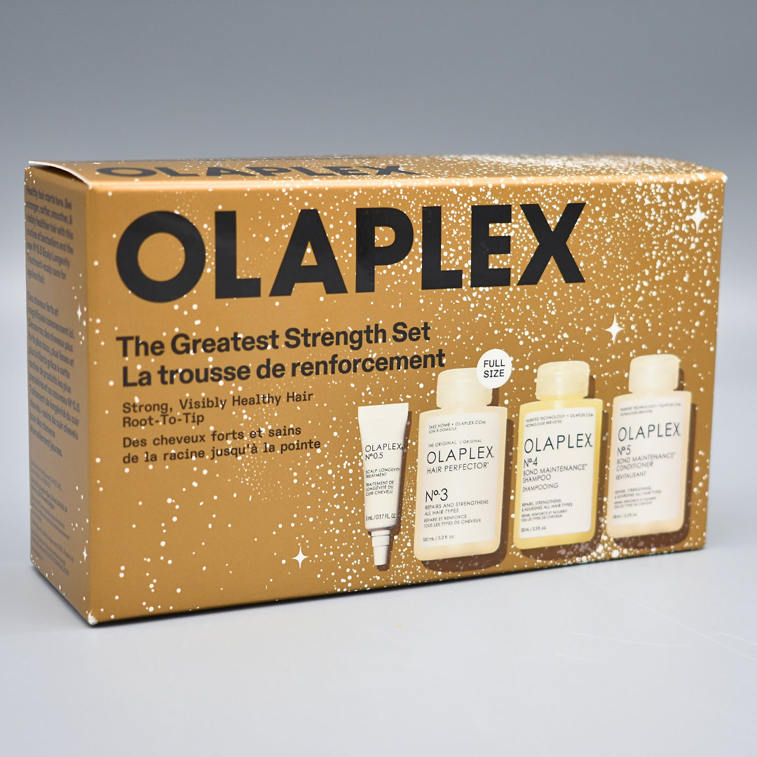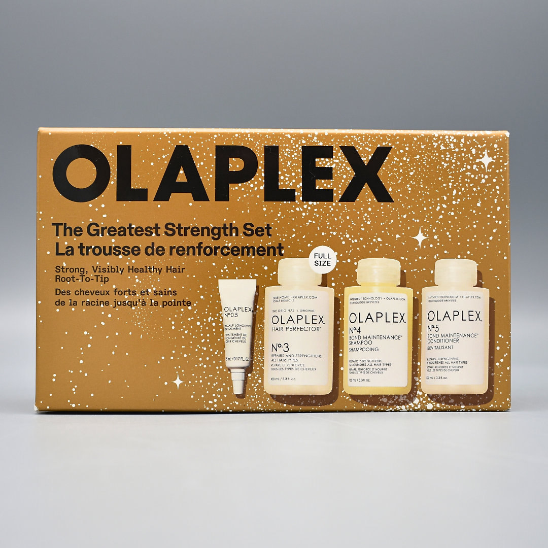 Limitovaná sváteční sada OLAPLEX The Great Strength Set Holiday 2025 je vysněný dárek pro všechny, kdo chtějí viditelně silnější, hladší a zdravější vlasy — ideální jako dárek nebo pro vlastní domácí „salonní“ rituál.