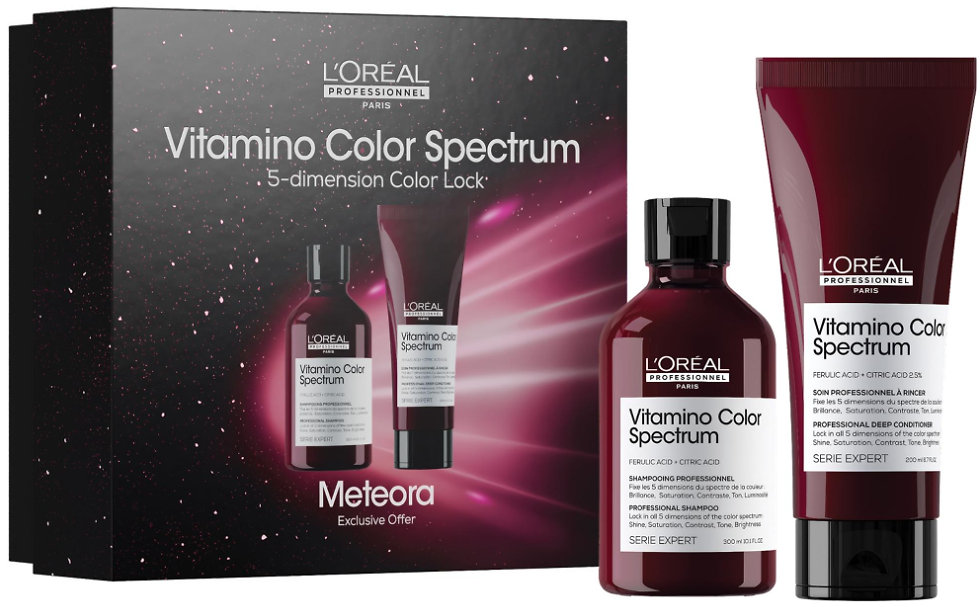Dopřejte svým barveným vlasům intenzivní péči a zářivý lesk s limitovanou edicí L’Oréal Professionnel Série Expert Vitamino Color Spectrum Duo Meteora.