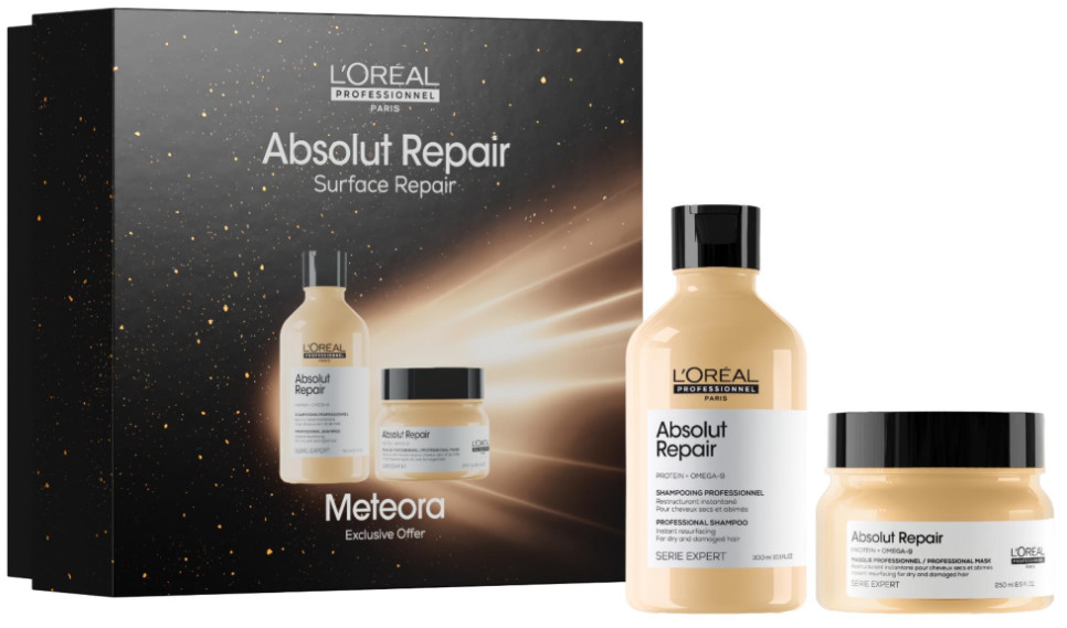 Dopřejte svým vlasům opravdovou obnovu s limitovanou edicí L’Oréal Professionnel Série Expert Absolut Repair Duo Meteora. Tato profesionální sada kombinuje dvě špičkové péče, které intenzivně regenerují poškozené vlasy, obnovují jejich hebkost, sílu i přirozený lesk.