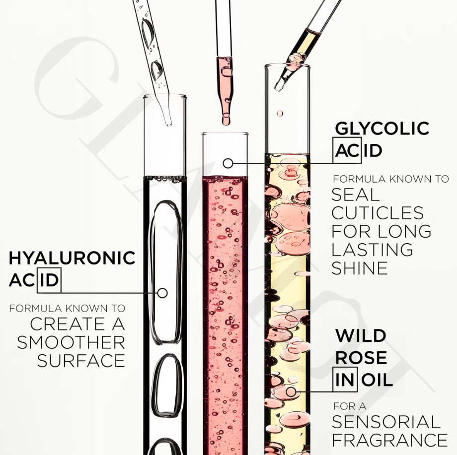 Produkty obsahují kyselinu hyaluronovou, kyselinu glykolovou a olej z divoké růže, které společně hloubkově hydratují, vyhlazují strukturu vlasů a chrání je před krepatěním.