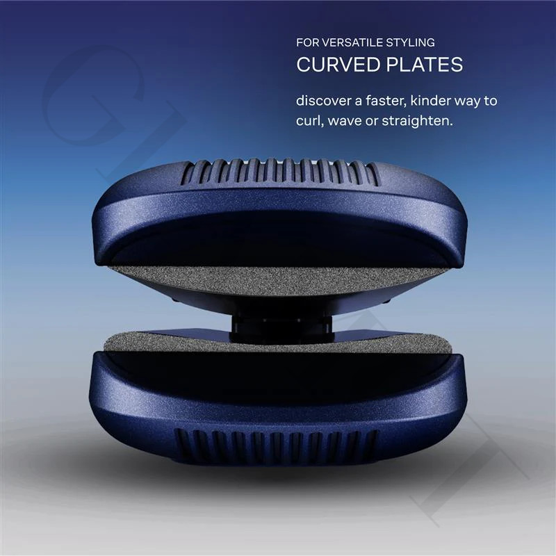 - Curved styling plates – zakřivené destičky pro univerzální použití (rovnání, vlnění, natočení) bez ostrých hran.
